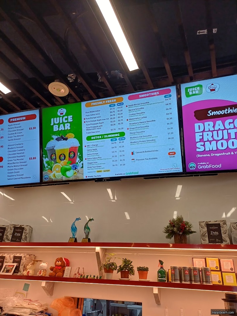 I love their halal-certified muffins, which are not too dry and not too sweet. The fresh juice is prepared after I place my order. The staff is very friendly and explains the muffin flavours before I decide which ones to choose. Good bakery and good service. You can sit there and enjoy. Highly recommend.