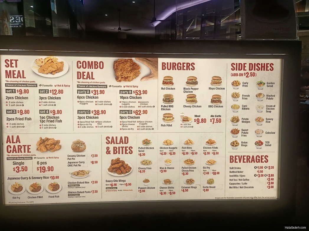 Chic-a-boo Fried Chicken, nestled in the heart of Marina Square at level 3, offers a distinctive halal-certified fast food experience that rivals major international chains while maintaining its unique farm-to-table charm. Located at 6 Raffles Boulevard, this spacious restaurant features rustic wooden furnishing that creates a welcoming ranch-like atmosphere, making it an ideal dining destination for families and groups exploring the Marina Bay area. The establishment prides itself on hand-breading every piece of chicken and ensuring that all orders are freshly fried upon request, demonstrating their commitment to quality over speed in an industry often dominated by pre-prepared fast food.\n\nThe menu showcases CHIC-A-BOO's specialty in mouthwatering fresh and tender fried chicken, complemented by an impressive selection of sides, burgers, and creative offerings at value-for-money bundle pricing. Signature items include their generously portioned fried chicken sets for 5 featuring 6 pieces of chicken, 6 nuggets, and 3 side dishes, while individual meals starting around .90 include fried chicken, battered fish, two customizable sides, corn muffin, and a drink. Popular sides such as perfectly seasoned potato wedges and curly fries, along with unique offerings like dinosaur nuggets and chowder bread bowls, provide diverse options that cater to both adults and children seeking comfort food with a twist.\n\nWhat distinguishes Chic-a-boo from conventional fast food establishments is their focus on made-to-order preparation and customer customization, combined with self-service efficiency that keeps prices competitive. The chicken consistently receives praise for being well-marinated, succulent inside with a crispy, flavorful exterior that features interesting herby seasoning. While the restaurant offers both counter service and self-service kiosks for ordering convenience, the spacious seating arrangement and absence of service charges make it an attractive alternative to pricier Marina Bay dining options. Despite occasional service inconsistencies, Chic-a-boo has established itself as one of the premier halal fried chicken destinations in Singapore, offering genuine value for money with portions and quality that often exceed customer expectations.