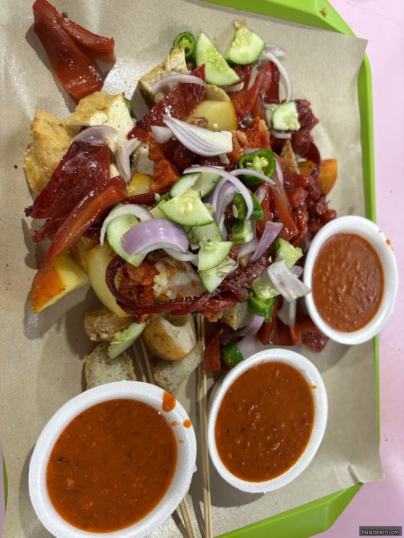 Not quite what we expected based on many of the recent reviews. The red sweet sauce has too many peanuts, resembling satay sauce. The oil was okay, not rancid and no taste of reused oil. Perhaps it was late, after 5 pm, as some items had run out, like the paru (cow's lung), liver, and fried flour-battered prawn. Maybe we'll give it another try in the distant future. The eating environment is maddeningly noisy as it was a Sunday, with the hawker centre full of migrant patrons having their afternoon meal or early dinner and sheltering from the heavy rainfall.