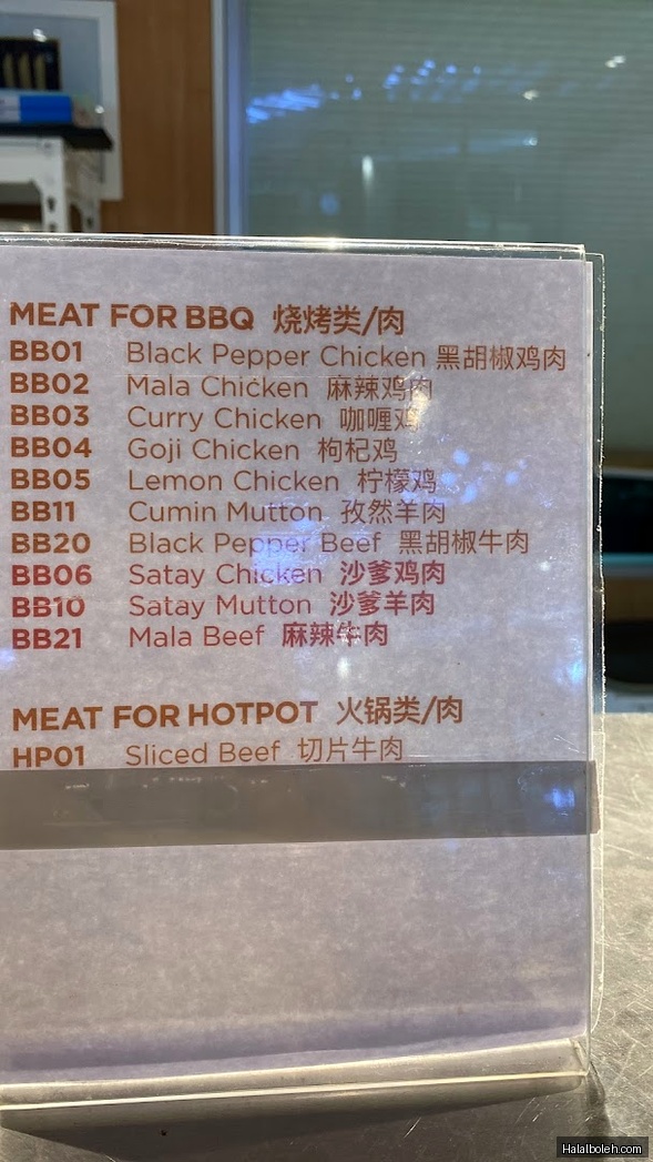 Cumin Mutton, Mutton Satay, Lemongrass Chicken, Goji Berry Chicken, Sarawak Black Pepper Beef, Mala Spiced Chicken, New Zealand Beef Brisket, Beef Striploin, and more.