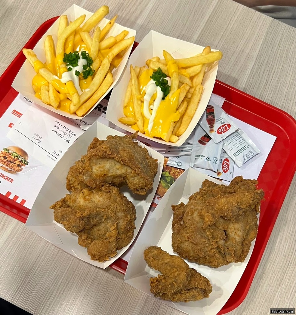 Decided to eat KFC and landed myself at the Bugis outlet. I must say, it's still finger-lickin' good! Had the 3-piece spicy meal. Also ordered the Zinger Stacker, and this is a must-try. It has two chicken fillets with cheese added. It's wonderful to eat, and I always like to have my 3-piece meal spicy. Delicious and good to eat at KFC.