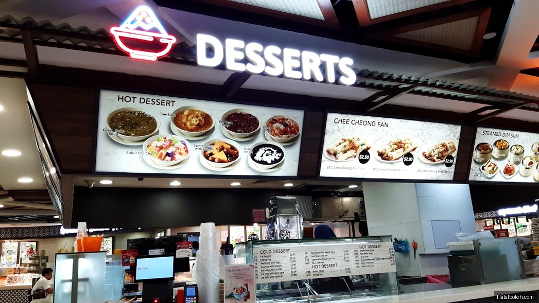 A wide variety of Singaporean local food and desserts are available, such as chicken rice, laksa, lor mee, fish steamboat, fish ball noodles, rice with mixed vegetables, yong tau foo, ice kachang, chendol, bubur cha cha, pulut hitam, red bean soup, green bean soup, fruits, fruit juice, and many more.