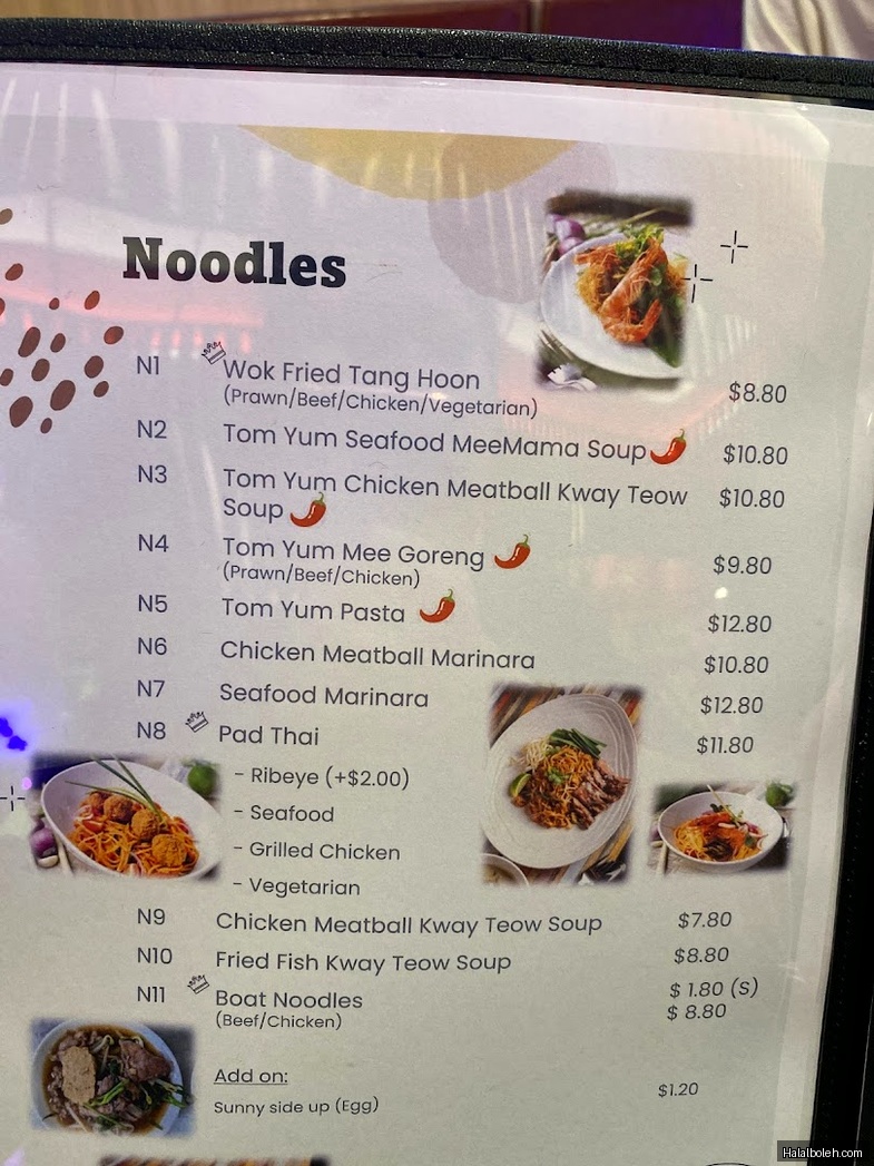 Very sedap. I took the ribeye fried rice which cost $14.80 and it was worth it. There are a lot of food choices, most of which are Thai and fusion. If you don't want an individual meal or are dining with family, you can buy sets such as a huge sea bass set, Tom Yam, and much more. Quite tasty and delicious for its rather fair price. I've eaten here multiple times because it's very sedap. Also, the service is good. You just need to scan a QR code to order, and if you have trouble, the waiters can help. The waiters and chefs also cook quite fast, about 10-20 minutes, and the food arrives quickly. The atmosphere here is really relaxing because not many people go here, and even during peak hours, it's not as crowded as other restaurants, probably because it's in the heartlands. Would recommend you to try!