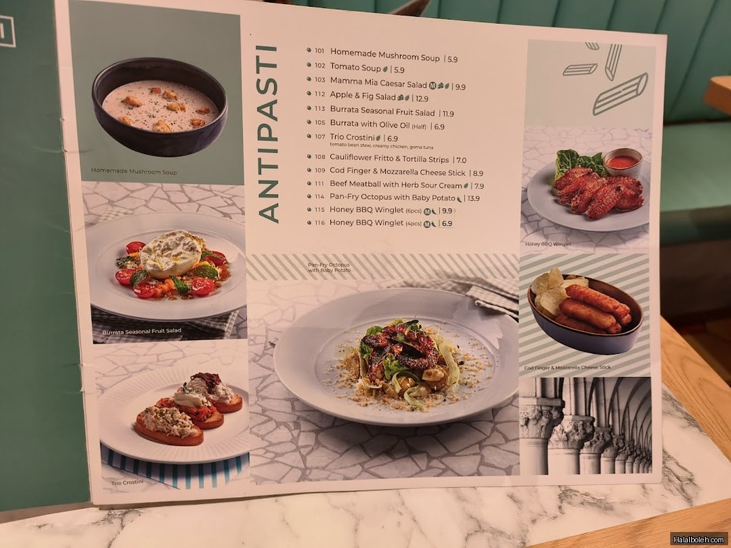 Their extensive menu features popular dishes like Spaghetti with Crab Meat & Burrata Sauce, Tortiglioni Rustic Beef Oxtail Bolognese, and Mafalda Pasta with Seafood Spicy Cream Sauce. Beyond pasta, guests can enjoy antipasti selections including Burrata with Olive Oil and Pan-fried Octopus with Baby Potato, along with rice dishes like Braised Beef Oxtail Cheese Baked Rice.