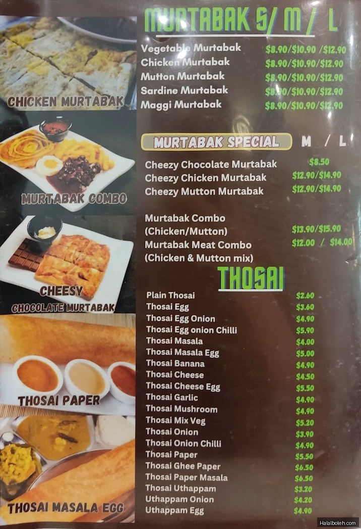 Their extensive menu offers over 50 prata varieties including their signature Plain Crispy Prata served two pieces for $3.60 that achieves the perfect balance of incredible crispiness on the outside and slight fluffiness inside, the popular Plaster Prata featuring a sunny-side up egg for $3, and specialty variations including cheese, banana, and chocolate options. Complementing their prata selection, they serve aromatic mutton curry, rojak, and their acclaimed dhum briyani with fragrant basmati rice that showcases authentic Indian Muslim cooking techniques.