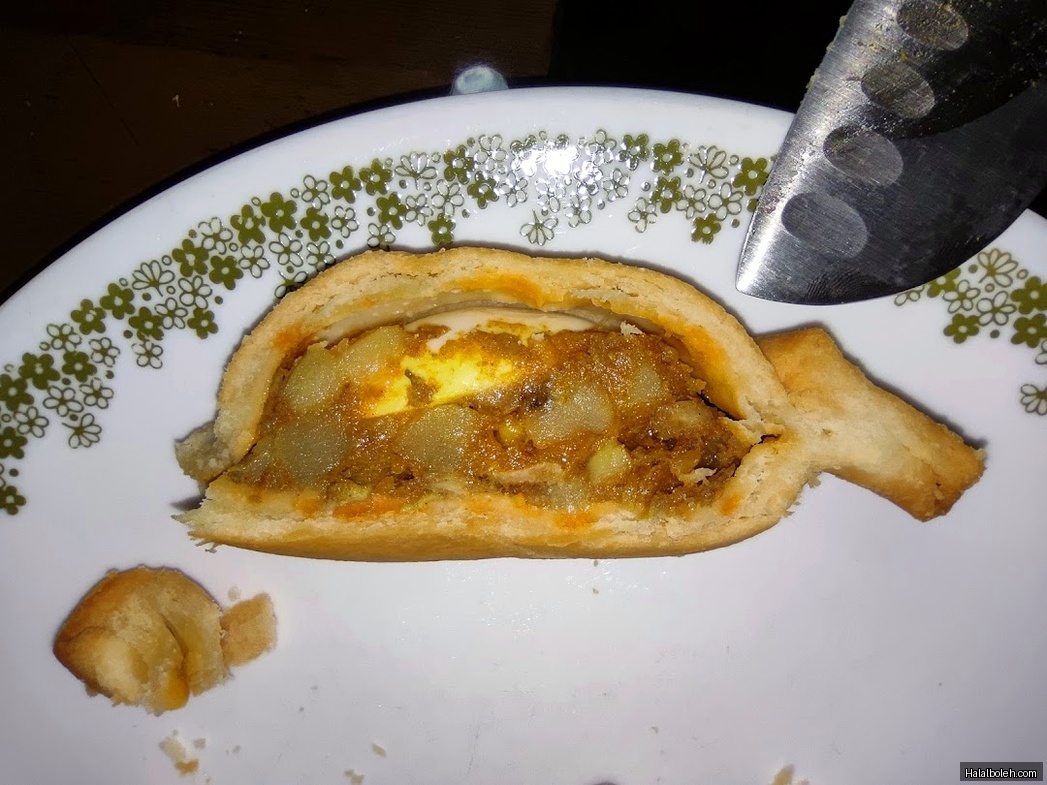Taking a bite of this Curry O curry puff is like hitting the jackpot of flavors. The crust is super flaky and buttery, melting in your mouth and setting the stage for what's inside. The filling is a cozy mix of juicy chicken, soft potatoes, and slices of hard-boiled egg, all wrapped up in a rich, tasty curry. Every bite is a perfect balance of flavors that just works.
