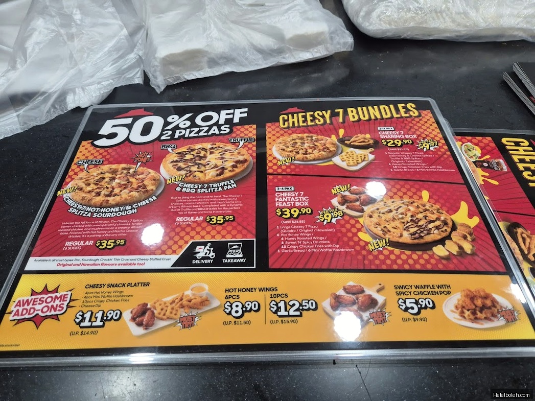 It's a small, cozy place and it's easy to find. They are having the Cheesy 7 promotion at the moment. I liked the large Cheesy 7 Hawaiian, which was great value at $19.90. This store also offers delivery! I saw some delivery personnel going out with pizza while I was here. There weren't many customers when I visited at night. It's a good place to chill. The service is also fast. Thanks to staff Kevin for making my pizza so quickly and guiding me through the online process for delivery and takeaway via the Pizza Hut app.