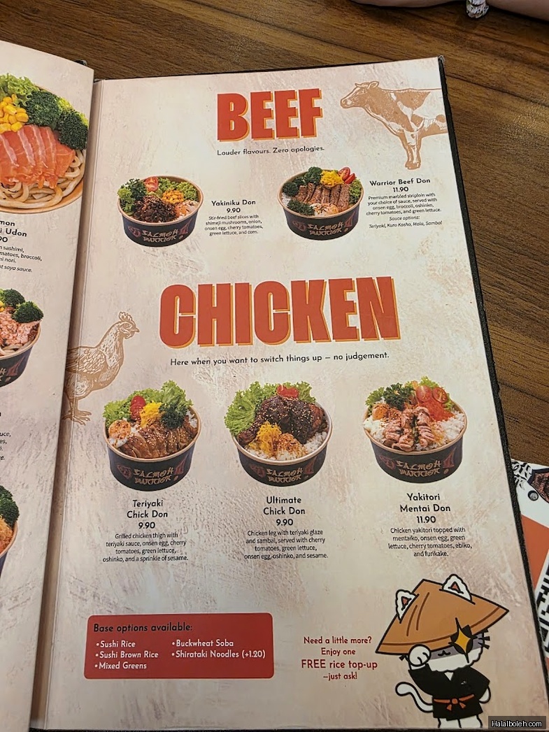 The restaurant's menu showcases an impressive array of salmon-centric dishes, including their signature Salmon Mentai Maki, the spicy Salmon Mala Mentai Maki, and the popular Warrior Mentai Don. Beyond salmon specialties, they offer diverse options featuring beef striploin and chicken preparations, all designed to deliver maximum umami while maintaining their healthy dining philosophy. Their innovative approach to Japanese cuisine ensures each dish provides both nutritional value and exceptional taste.