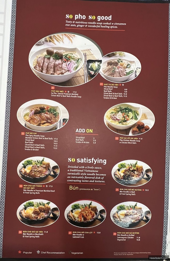 So Pho brings the authentic flavours of Vietnam to Singapore with its extensive selection of halal-certified Vietnamese cuisine. This popular restaurant chain specializes in traditional pho noodle soups, featuring rich broths with tender sliced beef, beef balls, and aromatic herbs that create a truly nourishing dining experience.