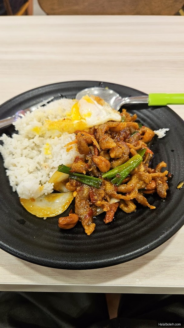 Ordered the cashew nut chicken meal and was given overcooked sunny-side-up egg and flour instead of chicken. The fried battered chicken had a flour-to-chicken ratio of 10:1. The only chicken I could find were tiny pieces. Dishonest chef and stall in cooking and serving.