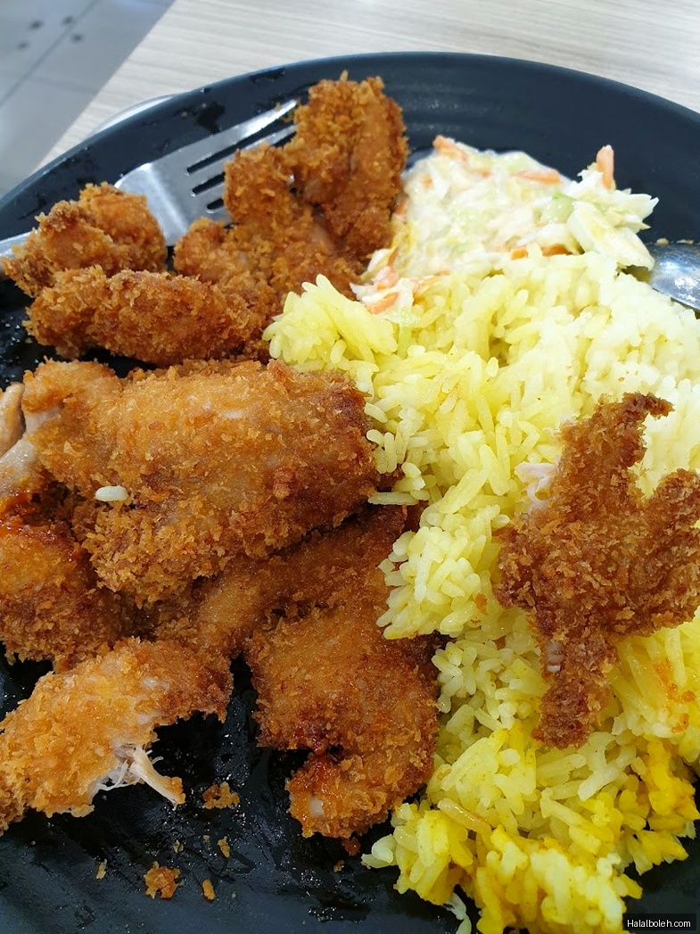 The chicken is crispy outside but tender and juicy inside! The aroma and taste of the rice, coleslaw, and chilli sauce are perfect, and the staff here are quick in their service and very friendly!