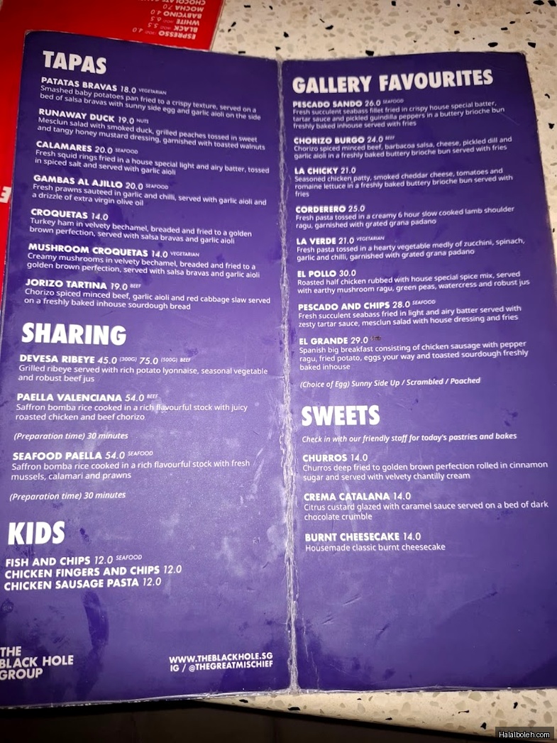 Located within the iconic National Gallery Singapore, The Great Mischief benefits from its prestigious address and the cultural atmosphere of one of Southeast Asia's largest visual arts institutions. Diners can combine their culinary experience with art appreciation, making it an ideal destination for cultural enthusiasts and tourists exploring Singapore's heritage district. The restaurant can be contacted at +65 9392 2762 for reservations and inquiries. It's worth noting that while some sources have previously indicated halal certification, potential Muslim diners should verify the current halal status directly with the restaurant, as certification details may have changed over time. The combination of its prime location, sophisticated Spanish cuisine, and reasonable pricing makes The Great Mischief a notable dining destination within Singapore's vibrant restaurant scene.