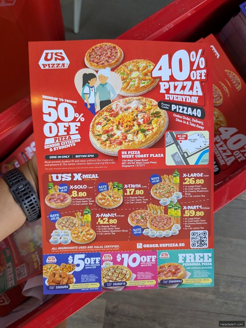 The menu is creative, featuring a mix of classic and unconventional toppings, and the pizzas are halal-certified. It's probably not for those seeking traditional Italian-style pizza, but if you're after something indulgent, filling, and a little over-the-top, US Pizza is worth a try.